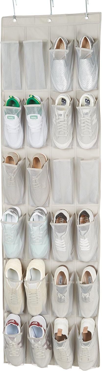 - 24 pockets for shoe storage: Each mesh pocket measures 8.8″ tall x 4.5″ wide, ideal for sneakers, flats, and sandals.